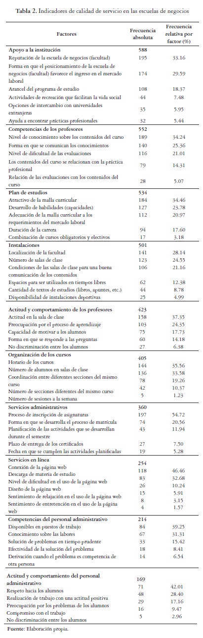 Palabras clave: calidad de servicio, modelo, escuelas de negocios, Chile.