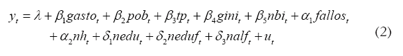 Dadas las variables a utilizar, la ecuación (1) se puede escribir a través de la siguiente regresión múltiple: