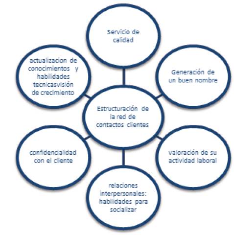 Si bien es fundamental la ejecución de un servicio de calidad para la adquisición y fidelización de los clientes, las manicuristas requieren para la expansión de su actividad económica y social la estructuración de la red de contactos. Así pues, las manicuristas en la medida en que adquieren reconocimiento y solicitud por nuevos clientes, junto a la misma interacción que sostenga con ellos, irán construyendo el grupo de clientes "fieles" o su red laboral propia. Nuevos contactos satisfechos con su servicio será directamente el medio que permitirá conectarla con clientes "forasteros", los cuales a su vez harán la misma recomendación, produciéndose un ensanchamiento de su red laboral. Esta red por lo general está situada en estratos socioeconómicos cercanos y de ubicación geográfica variada.