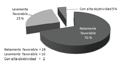 También se analizó en el tratamiento y presentación de los temas la existencia de un sesgo netamente favorable a la imagen de la empresa, levemente favorable o, en su defecto, una exposición con alta objetividad, situación última que solo se encontró en 2 casos (figura 12).