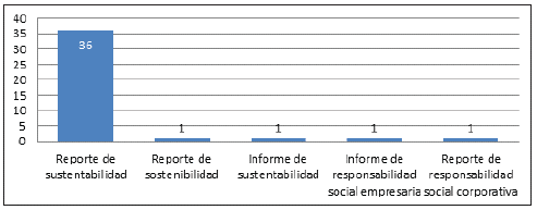 Este desplazamiento de la RSE en manos de la sostenibilidad se advierte desde el momento mismo en que se observan los nombres de los reportes, que tal como se muestra en la figura 4, tan solo 2 casos hacen referencia a la RSE. De manera casi excluyente -36 casos- el nombre que se impone es el de Reporte de sustentabilidad. En los 2 casos restantes, se utiliza una variante en este mismo sentido.