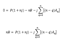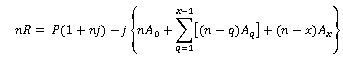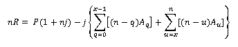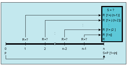 Al tomar como fecha focal el momento n, pueden representarse las variables R, P, j y n en el diagrama de tiempo-valor que se muestra en la figura 1.