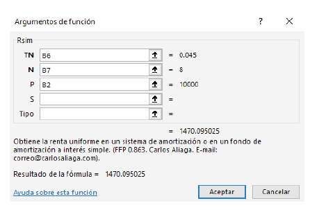 Aplicaciones de la función Rsim en amortizaciones con interés simple