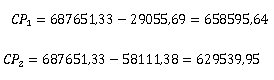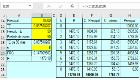 Calculada la cuota interés de la cuota total, procede a calcular la cuota principal CP al restar la cuota total del interés: