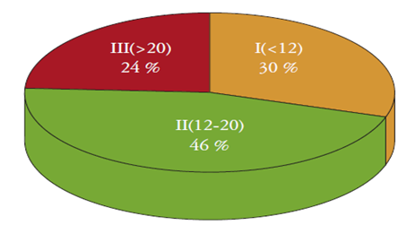 Esta sección presenta los resultados generales respecto de las caracterís ticas de las revistas, el total de publicaciones y los niveles de producción por tema. La figura 1 presenta la distribución de revistas de acuerdo con el número de artículos que publican en promedio anualmente. Las revis tas con menos de 12 artículos por año representan el 30 % de las revistas clasificadas (11), entre 12 y 20 artículos por año un 46 % de las revistas clasificadas (17), y el restante 24 % son revistas con más de 20 artículos por año (9). Se denominan como categorías 1, 2, y 3, respectivamente, para el propósito de este análisis. Se aclara que estas no se relacionan con la calidad o ranking de la revista.