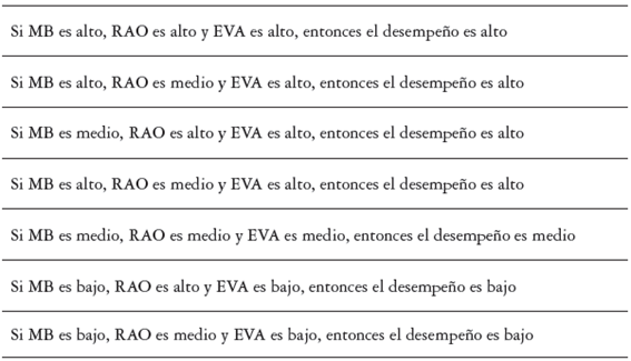 ¿Este método se considera apropiado para este estudio dado el carácter probabilístico del comportamiento de los indicadores empleados; RAO, MB y EVA pueden tomar los valores lingüísticos “bajo, medio y alto”, que tienen un significado semántico y que se pueden expresar numéri camente por medio de funciones de pertinencia como entrada del SBRF.