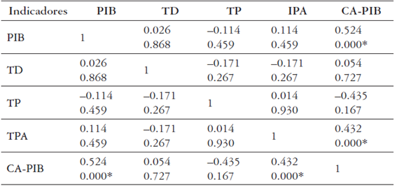 Para una mejor reflexión sobre este asunto, se incluyó un análisis de co rrelación de los indicadores que muestra en la tabla 9.