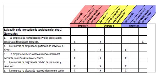 La innovación de servicios en las tres empresas encuestadas evidenció similitud en las respuestas, no obstante, la Empresa C (mediana) presentó una variación en lo relacionado con el reemplazo de servicios obsoletos o con poca demanda (véase la figura 2).
