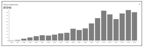 Foram identificados 896 trabalhos publicados que foram utilizados como o corpus da análise bibliométrica. Em seguida, os dados coletados foram tratados no pacote de software de análise bibliométrica HistCiteTM e executadas as seguintes análises: distribuição das publicações por ano, 20 dos periódicos com mais artigos publicados, 20 dos autores com maior número de publicações, 20 dos países (por meio das instituições de vínculo dos autores) com mais artigos publicados, top 20 dos artigos mais citados na Web of Science (Global Citation Score) na faixa temporal pesquisada e o top 20 dos trabalhos mais citados no conjunto de artigos selecionados nesta pesquisa (Local Citation Score) sobre a temática apresentada em ordem cronológica.
