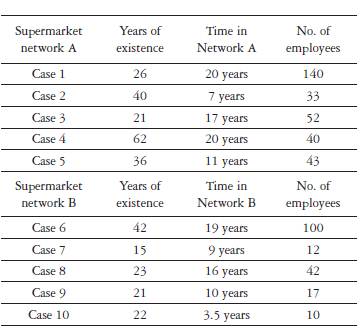 The ten firms studied are members of two supermarket networks. Five of them belong to Network A, and five to Network B. Network A was created in 1996, when 12 businessmen, representing 22 supermarkets, joined their efforts to cope with a strong competition and big supermarket chains that were established in the region and remain in the market. Today, Network A has nearly 60 supermarkets distributed in 24 towns in different regions of the Rio Grande do Sul state.