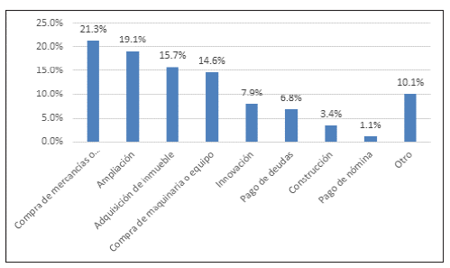 Como se puede apreciar en la figura 2, el principal uso que la empresaria le ha dado al financiamiento obtenido ha sido para cubrir las necesidades de corto plazo, es decir, más del 50 % están preocupadas por solucionar el día a día de la empresa. Sin embargo, las necesidades de largo plazo como son ampliación (19,1 %), adquisición de inmueble (15,7 %), innovación (7,9 %) y construcción (3,4 %) suman el 46,1 %, lo cual muestra que un porcentaje importante de las empresarias están ocupadas en su permanencia a largo plazo.