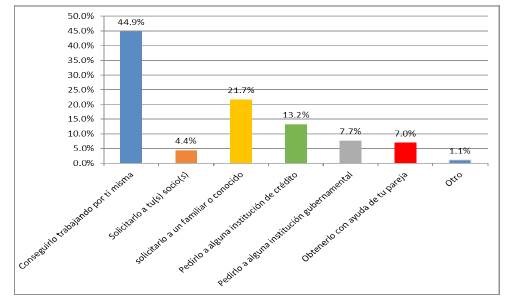 Estos resultados coinciden con la aportación de Chant y Pedwell (2008) quienes mencionan que "cuando las mujeres necesitan un préstamo tienden a obtenerlo de familiares y amigos y, en particular, a recurrir menos que los hombres a prestamistas y bancos comerciales, al iniciar una empresa realizan una inversión menor, y suelen endeudarse menos con las fuentes conexas (incluidos amigos y familiares)" (p. 23).