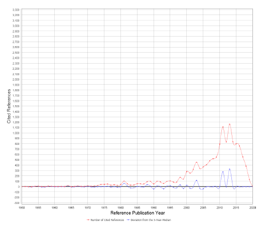 Bommanri, L., Haunschild, R. & Leydesdorff, L. (2018). Reference publication year spectroscopy (RPYS) of Eugene Garfield's publications. Scientometrics, 114(2), 439-448. https://doi.org/10.1007/s11192-017-2608-3