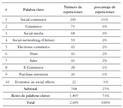 Palabras clave: comercio social, redes sociales, tecnología, bibliometría.