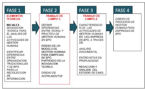 En la figura 3, se plasman las etapas con las cuales se llega al diseño del modelo de gestión humana para empresas de BPO.