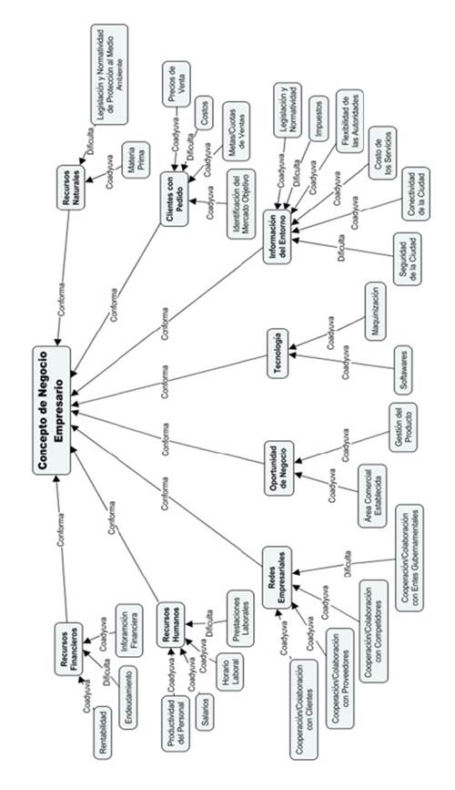 Para la segunda etapa, se realizó un análisis (figura 1) derivado de los resultados de las entrevistas a los encuestados en cada una de las categorías propuestas, generando un grafo de red semántica elaborado con el software Atlas.ti, donde se muestra la relación de cada uno con las categorías mencionadas y los factores que los conforman en relación con lo que coadyuva y dificulta los procesos para las pymes, entre ellos los recursos naturales, financieros y humanos.