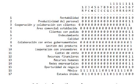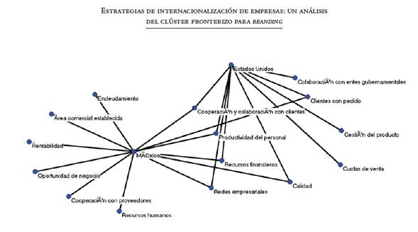 Con ello surge la elaboración de redes entre los factores resultantes en México y los Estados Unidos de las entrevistas con los empresarios, con la finalidad de obtener medidas de centralidad y grado nodal para generar la interpretación apropiada del fenómeno.