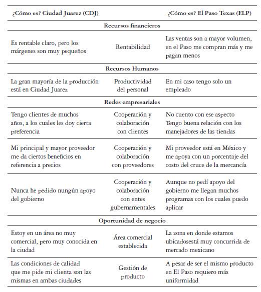 A continuación, la tabla 1 muestra solo un resumen de las principales percepciones de los actores y un análisis de los elementos y atributos que se debieron trabajar para que se motivaran las buenas prácticas de negocios en ambas ciudades de la frontera.