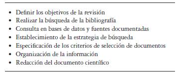 El abordaje del tema se desarrolló considerando el planteamiento de Guirao-Goris et al. (2008) para el proceso de revisión documental (tabla 1).