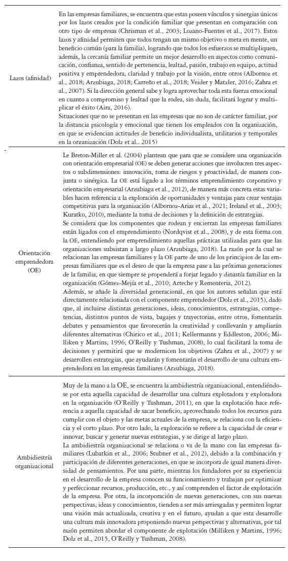 Sobre las empresas familiares, se han realizado distintos estudios a lo largo del tiempo, iniciando desde el concepto, hasta las implicaciones, presencia y repercusiones que tienen en las diferentes economías en el ámbito nacional. En cuanto al término, se identifican diversas definiciones, entre ellas Aira (2016) plantea que las empresas familiares son "aquellas unidades económicas que son controladas accionariamente por una o dos familias, que poseen influencia en la dirección de la empresa y consideran que va a ser transferida a las siguientes generaciones" (p. 90). Por otro lado, Orozco y Rentería (2012) la definen como