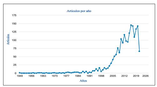 Así es como el comportamiento de artículos publicados referidos a la motivación de las personas, en particular, a los clientes en la escogencia y conducta de compra, ha tenido un desarrollo progresivo desde 1997 hasta 2020 (figura 1).