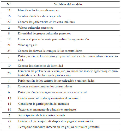 Las variables seleccionadas son resultado de las condiciones existentes del mercado actual de comercialización en la ciudad de Tulum, estado de Quintana Roo, se hace una propuesta de modelo que considere incorporar elementos y permita a los actuales participantes del canal poder integrar al sistema nuevos participantes a mediano plazo en que se preven condiciones de crecimiento de mercado, de tal forma que permita propiciar la comercialización sustentable de los productos.