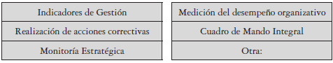 De las siguientes afirmaciones, indique con una X cuáles realiza para la evaluación y control de las estrategias implementadas en su organización: