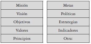 En cuanto a la plataforma estratégica, los resultados muestran que no todas las empresas tienen definidos todos sus componentes, pero sí algunos; esta situación ocasiona que se les dificulte posteriormente medir y verificar con exactitud el cumplimiento de los objetivos propuestos (David, 1992; Goodstein et al., 1998; Ackoff, 1983), por no tener una estructura sólida y bien diseñada. Adicionalmente, se observa que los postulados fundamentales de la plataforma estratégica más presentes en estas organizaciones son la misión y visión, cada uno con 94.3 %, seguido de los objetivos, con 84.9 %. En último lugar se ubican los principios y las políticas, con 54.7 % (figura 3).