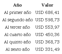 Una vez determinados los conceptos que forman parte del costo total en la opción de adquirir un vehículo propio, se hace necesario traerlos a valor presente para determinar el valor actual de costos (VAC) en cada sede. Para lo anterior se construye un flujo de caja utilizando la tasa de descuento propuesta del 6 % y para el período de evaluación del proyecto de 6 años ((Ver tablas 2 y 3).