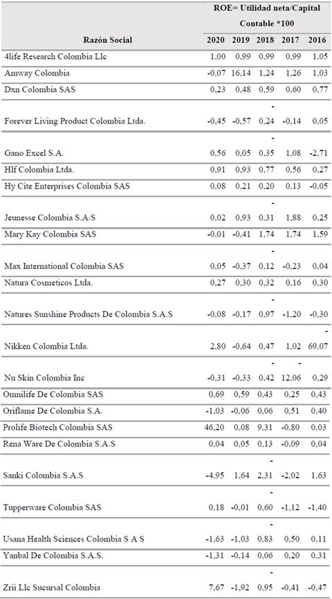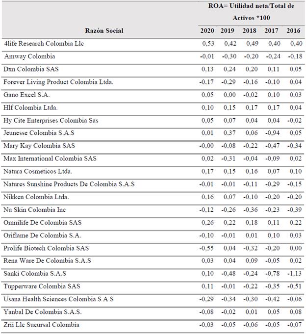 Posterior a la caracterización de las 23 empresas de Network Marketing se procede a identificar sus indicadores de rentabilidad, para lo cual se tuvo en cuenta la información de los años 2016, 2017, 2018, 2019 y 2020.
