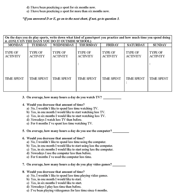 Therefore, the aim of this study was to validate a TTM-based, culturally-relevant (García y Barragán, García Campos, & Reyes Lagunes, en prensa) instrument for school-age children that included both alimentation and PA topics, and that could identify at which stage of change the child currently is, with the goal of improving strategies and interventions targeted towards childhood obesity.