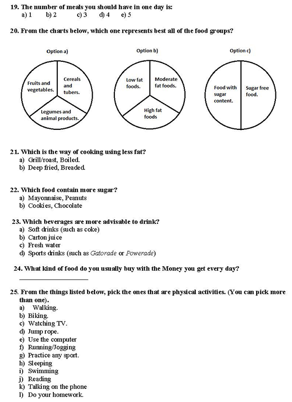 This was an observational, cross sectional study. The participants were 1671 school-age children from several primary schools across Mexico (49.2% male, 50.8% female). They were studying from 4th through 6th grade. The ages of the participants were between 8 and 12 years old, since evidence shows that children at these ages have acquired greater autonomy to internalize knowledge and change attitudes towards food and PA (Daniels & Greer, 2008). The CEHAF questionnaire was applied collectively during school hours in the presence of the class teacher and the researchers, who clarified emerging doubts during the process.