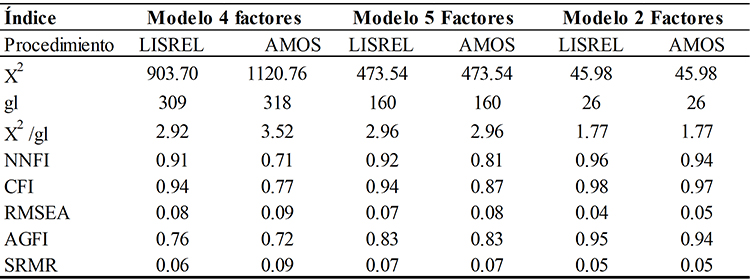 Posteriormente, con la muestra 2 se realizó AFC de la EFL mediante análisis encuadrado en los modelos de ecuaciones estructurales (Structural, Equation Models [SEM]) con los programas LISREL 8.80 y AMOS 18, con la intención de presentar dos diferentes métodos de estimación de análisis, dado que utilizan diferentes algoritmos de solución, lo que proporcionará una mayor sensibilidad al modelo.