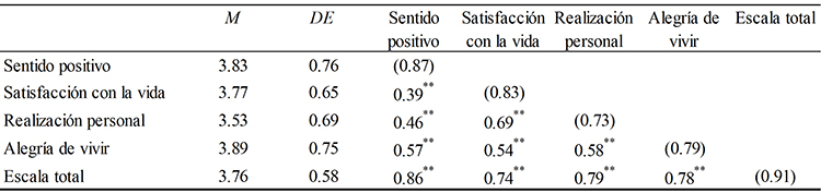 Estos resultados junto con los obtenidos primeramente en el AFE, llevan a considerar que la felicidad para la muestra de mexicanos se puede explicar principalmente a través de constructos como el sentido positivo y la satisfacción con la vida.