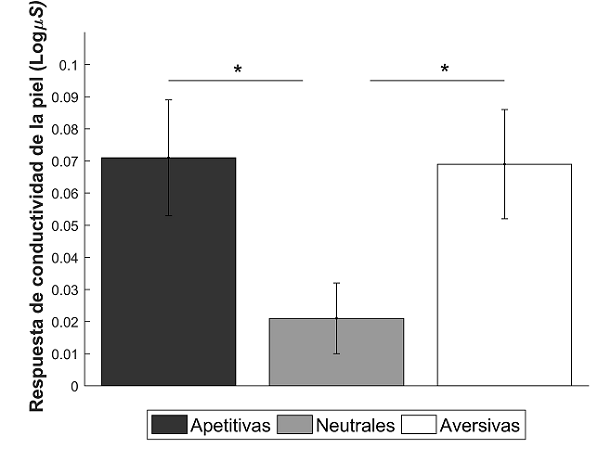 La mayor RCP ante estímulos afectivos es un claro indicador de mayor actividad del sistema nervioso simpático ante estos tipos de estímulos, en comparación con los neutrales. Estos resultados corroboran el modelo bio-informacional de las emociones (Lang, 1995), donde el arousal está en función de la valencia, generándose una mayor actividad simpática tanto ante la estimulación apetitiva como ante la defensiva, debido a que en ambos casos se requiere la inversión de energía para generar conductas de aproximación o evitación, respectivamente (Bradley & Lang, 2007). La RCP también es un indicador de una respuesta de orientación (Bradley, 2009), lo que sugiere que los estímulos afectivos generan mayor respuesta de orientación que los estímulos neutrales.