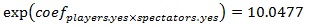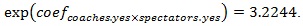 (7)For example, for that of the interaction players.yes×coaches.yes, the value of its coefficient is 1.7880 and exp(1.7880) = 5.9775. This means that if, in the referee’s opinion, there was aggression towards him from the players (yes), the probability that he considers that there was also aggression from the coaches is approximately 6 times greater than if he had considered that the players did not show aggression (no), regardless of his opinion of the aggressiveness of the spectators.