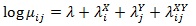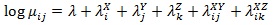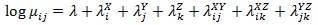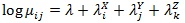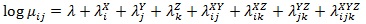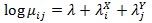 (1)which represents a loglinear model of independence, in that only the row effect, λiX, and the column effect, λjX, are added to the main effect, λ, to obtain log μij.
