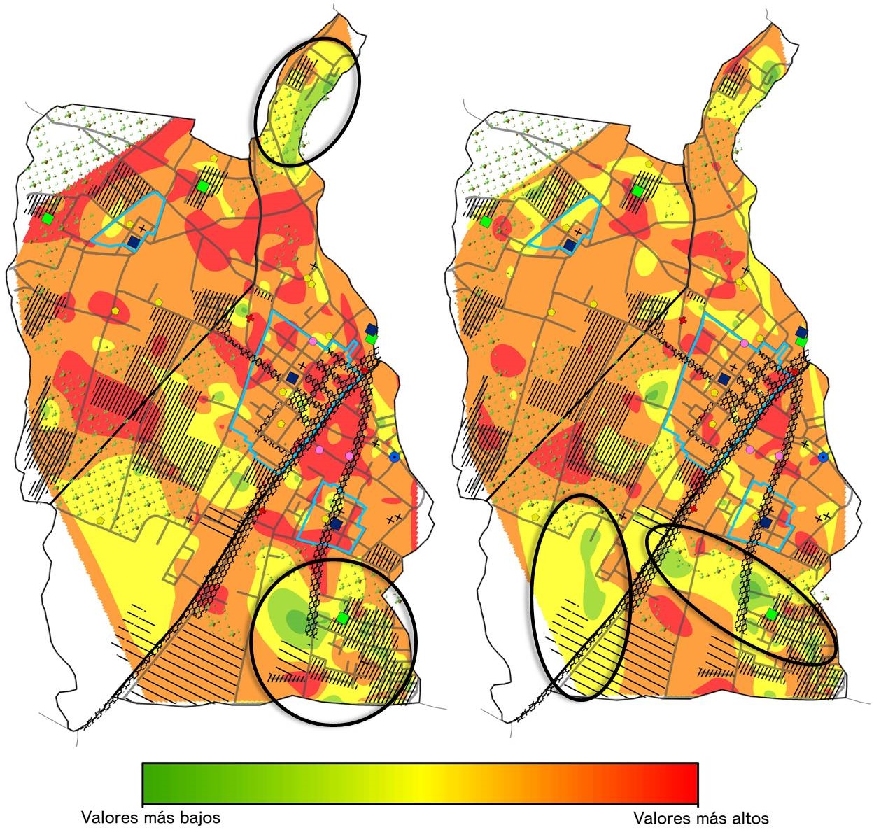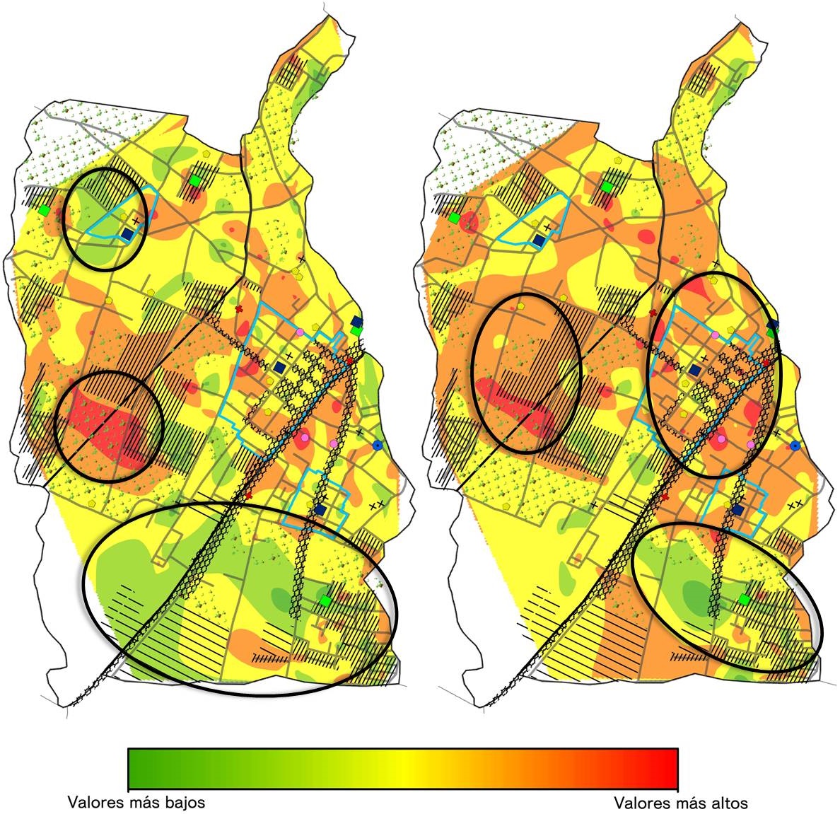 Asimismo, la metodología utilizada en este estudio, la cual combinó las herramientas cuantitativas con los instrumentos de información geográfica, permitió aportar evidencias a favor de la hipótesis de que las características físico-espaciales del territorio inciden sobre el sentido de comunidad que desarrollan los habitantes de diversos contextos. El mapeo de los datos muestra patrones de distribución que confirman que el área de residencia y algunos atributos urbanos están incidiendo en el desarrollo de un mayor o menor sentido de comunidad, tal y como lo plantearon Prezza et al. (2001) y Leviten-Reid et al. (2020). La prevalencia de puntuaciones más altas en los sectores cercanos a los centros urbanos permite establecer la hipótesis alternativa de que ello responde a un mayor acceso a servicios y comercios, así como a dotaciones o equipamientos que posibilitan el encuentro entre vecinos en concordancia con lo argumentado por Nasar y Julian (1995).