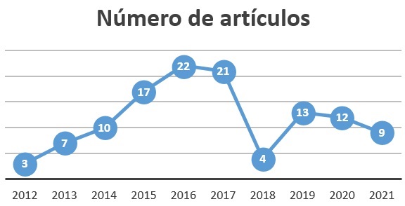 La decisión de limitar la búsqueda al período 2012-2021 se basó en la intención de examinar los datos más recientes, correspondientes a la última década. Se dividió en tres periodos con el fin de establecer las tendencias bibliométricas en el campo de la supervisión en psicología clínica. Estos tres periodos fueron delimitados de forma arbitraria y por conveniencia al dividir la década en períodos de igual duración y facilitar el análisis.