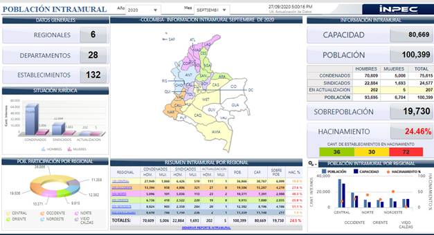 Hasta el momento, la declaratoria de emergencia penitenciaria y carcelaria no ha brindado soluciones de fondo para mitigar el riesgo de contagio y las personas privadas de la libertad no han podido llevar a cabo la estrategia de distanciamiento social, dentro de un sistema que alberga aproximadamente un 24 % más de las personas para las que tiene capacidad en los establecimientos penitenciarios y carcelarios a cargo del INPEC y más de un 120 % de las personas para las que tiene capacidad los centros de reclusión transitorios.