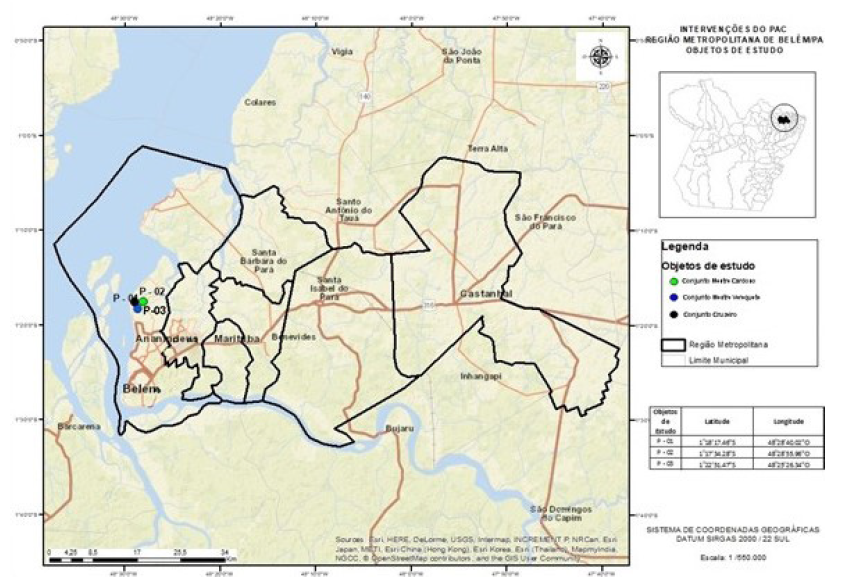 A pesquisa realizada teve como lócus, as intervenções realizadas e especificamente destinadas ao remanejamento de famílias em situação de vulnerabilidade socioambiental do Projeto Taboquinha, em Belém (PA). Essas intervenções são subprojetos que visam à provisão habitacional e que fazem parte de projetos do PAC contemplados no eixo da Infraestrutura Social e Urbana.