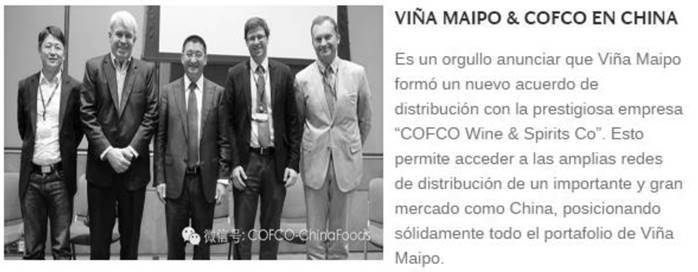 La figura 5 encarna la generalidad de las representaciones encontradas a lo largo del análisis de las páginas web, de corte más formal e institucionalizado. Se aprecia la celebración de un acuerdo con la compañía COFCO, una de las empresas estatales más importantes de China, la que se muestra como una gran oportunidad comercial para la firma chilena y con presencia de sus representantes.