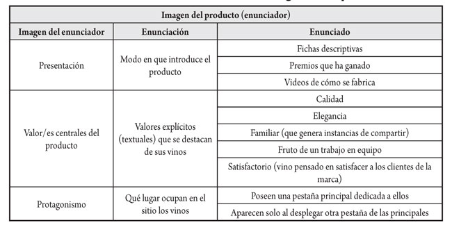 La segunda matriz permite analizar al producto (también como enunciador) con categorías específicas de este y distintas de las construidas en la matriz anterior (tabla 3).