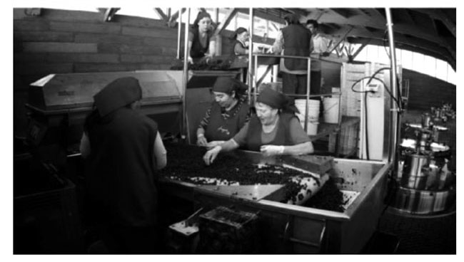 En las figuras 2A y 2B se aprecia la presencia de la infraestructura, la maquinaria y los operadores involucrados en el proceso productivo, y se destacan en el texto las ventajas del proceso técnico utilizado en la producción de los vinos.