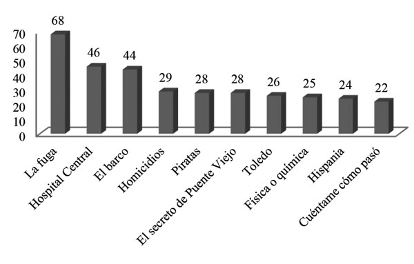 La intriga generada por las ficciones de aventuras, el policiaco y el fantasy explica que el 50 % (5 programas) de los programas pertenezcan a alguno de estos géneros, pese al predominio del drama en la programación española. Las ficciones ambientadas en el pasado son las que más comentarios neutrales generan (figura 5).