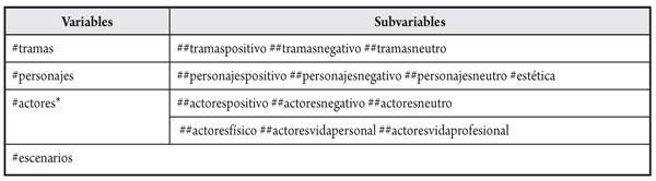 El copy and paste en archivos .doc (documentos primarios) permite hacer frente a la versatilidad del contenido en línea con la creación de copias estáticas de las 8103 unidades de análisis extraídas de los 251 recursos web. El contenido de los mensajes fue codificado a través de un libro de códigos creado para el software de análisis cualitativo Atlas.ti. La puesta a punto del código de análisis se realizó tras una aproximación al corpus discursivo de la serie televisiva Los protegidos (Antena 3), a través del cual se definió el sistema de categorías heurísticas, surgido tras una aproximación a los datos (grounded theory). El resultado final del libro de códigos está formado por 49 variables, de las cuales 17 están vinculadas con el relato de las ficciones.