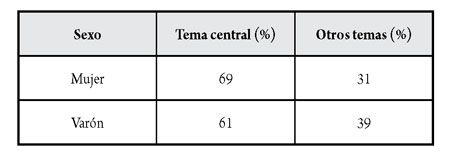 Desde la perspectiva del sexo del autor de la pieza de opinión (tabla 6), se midió también si el plebiscito era el tema central de la publicación, valoración en la que se halló mayor interés de las mujeres en tratar el plebiscito como tema único en sus columnas (69 %) y en los varones el interés del plebiscito como tema central fue un poco inferior (61 %).