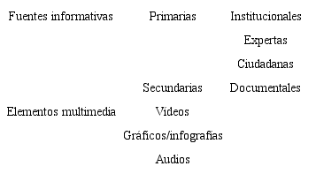 El segundo componente periodístico, a nivel de contenido, es el tratamiento de las fuentes informativas. Del mismo modo que ocurre en un reportaje o en un documental, MonteLab se apoya en un importante número de fuentes de diversa naturaleza que otorgan al relato mayor credibilidad y pluralidad. Fuentes documentales (53 %), ciudadanas (21 %), institucionales (16 %) y expertas (10 %) emergen a modo de totales con una duración que en ningún caso supera el minuto o minuto y medio. Su testimonio sirve para ilustrar y argumentar cada una de las decisiones que el jugador tiene que tomar durante el transcurso de la partida.