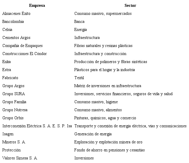 Para contrastar el marco propuesto, con la práctica, se eligieron las primeras cuarenta empresas de origen nacional que aparecen en el índice bursátil de referencia Colcap (2017)8 y que cotizan en la BVC, para invitarlas a participar en la investigación. Este criterio primó en la definición de la muestra, por cuanto la investigación abarcó empresas de diferentes ciudades del país. Otra razón que justifica la elección es que a estas compañías se les exige mayor solidez y transparencia en las informaciones que entregan al mercado de valores, así como reportar sus estados financieros para sus accionistas y otros interesados en invertir en ellas, lo que hace suponer que dan relevancia a sus actividades de comunicación.