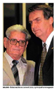 Saudado por Bolsonaro como ‘herói do Araguaia’, o coronel Lício ocupou a tribuna por uma hora fazendo um relato frio sobre a morte dos guerrilheiros e demonstrando orgulho da operação. Ele chegou a chorar ao falar de outros militares que também estiveram na repressão da guerrilha. (O Estado de S. Paulo, 25 jun. 2005, p. A11).